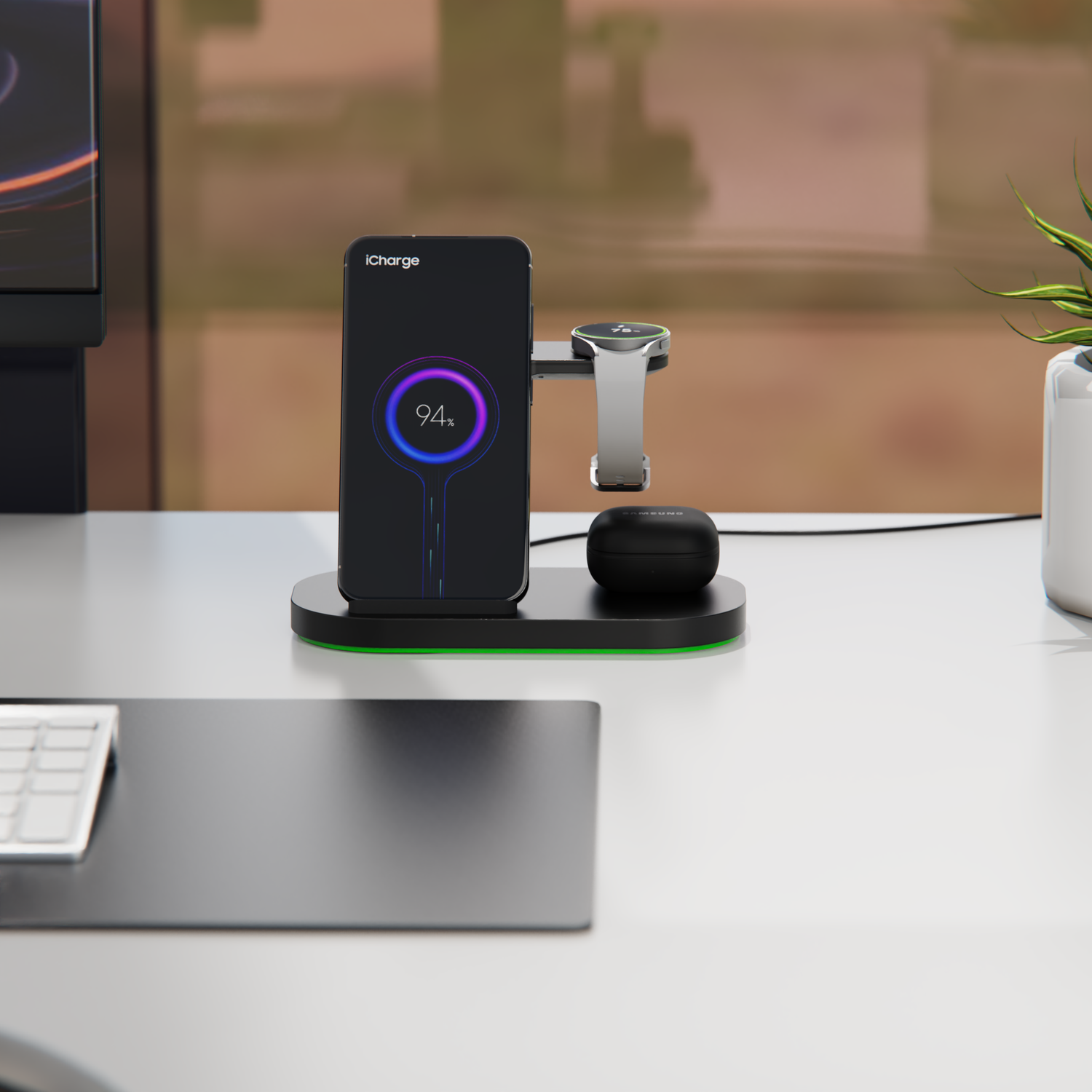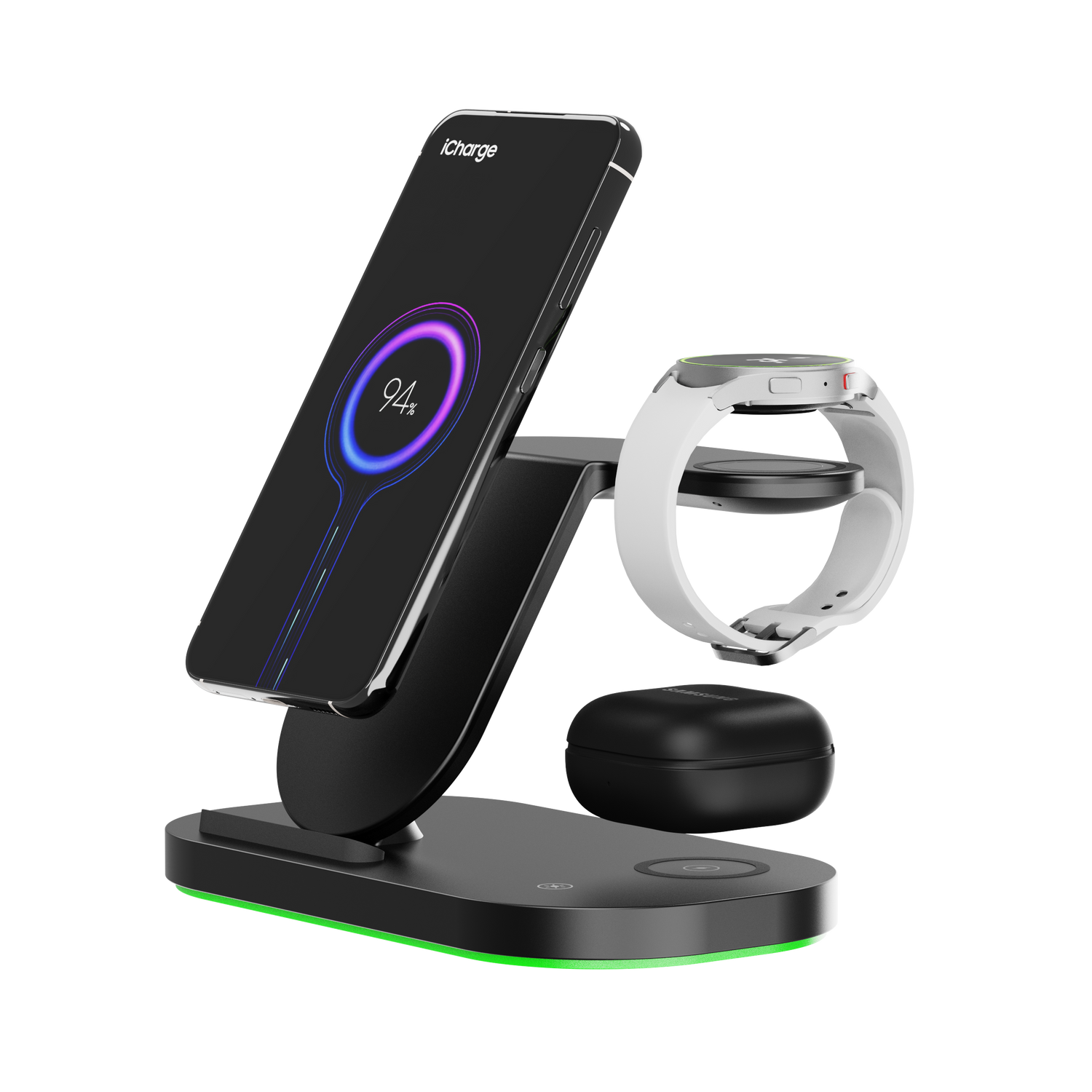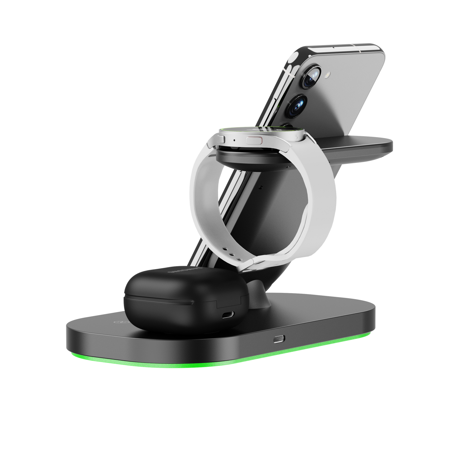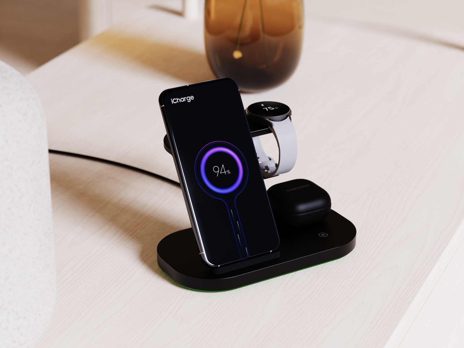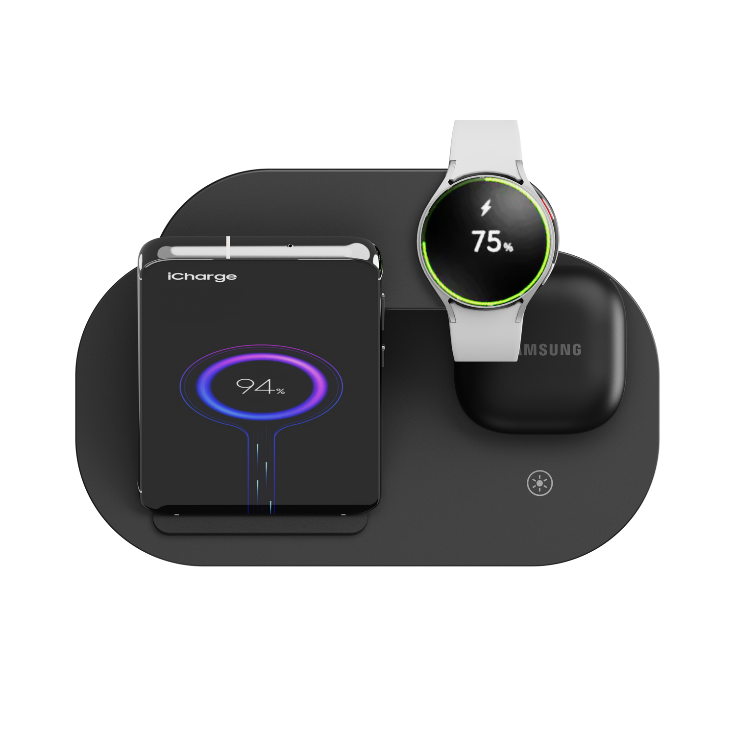 Känner du igen känslan av alla lösa kablar på nattduksbordet eller skrivbordet som gör det rörigt när du laddar dina enheter? Samsung iCharge Pro 2.0 är lösningen. Denna laddningsstation ser till att alla dina Samsung-enheter laddas på ett och samma ställe. Med sitt eleganta design och kraftfulla laddningskapacitet är denna iCharge-laddare ett oumbärligt tillbehör för ditt (hem)kontor eller sovrum.